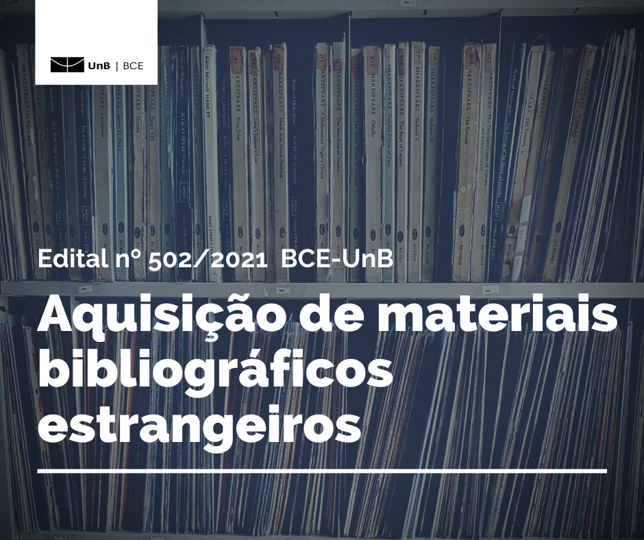 [vc_row][vc_column][vc_column_text] A Biblioteca Central (BCE) torna público o edital n. 502/2021 de registro de preços para a aquisição de materiais bibliográficos existentes no mercado estrangeiro, constituídos de livros, mapas, audiovisuais, CD-ROM e outros, de acordo com às especificações e quantidades estabelecidas em termo de referência da contratação. A sessão pública será realizada em 30 de novembro