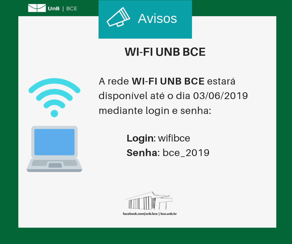 O acesso à rede sem fio na BCE passará a ser feito mediante login e senha. Os usuários externos poderão realizar seu cadastro para acesso à rede UnB Wireless portando documento com foto e CPF. Alunos devem acessar a rede com matrícula e senha do Matrícula Web. Servidores docentes e técnico-administrativos devem acessar com e-mail